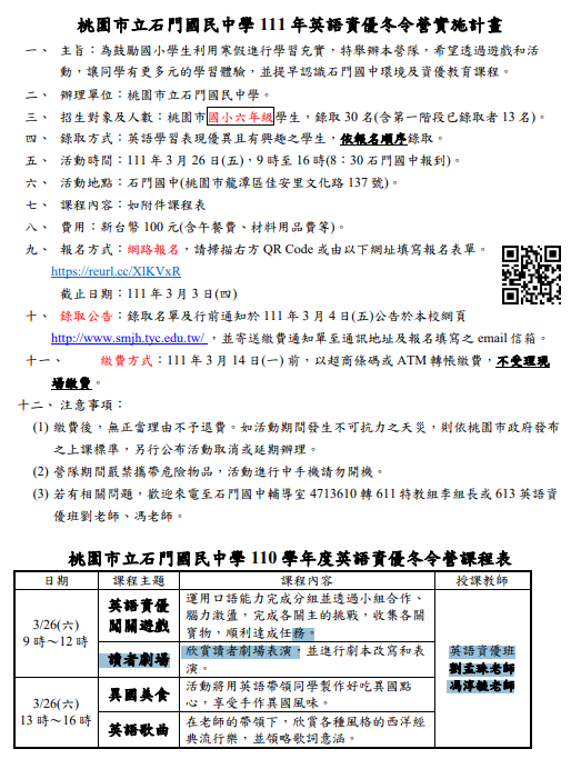 3) 1110210年石門國中英語資優冬令營因疫情延後至0326日辦理0303前開放第二階段報名1.pdf