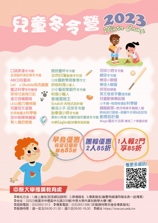 中原大學推廣教育處開設「兒童冬令營」系列課程海報