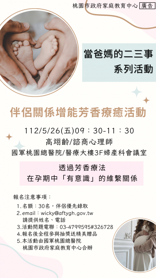 | (五) | 報名方式:請E-mail至「wicky@aftygh.gov.tw」提供姓名、電話報名。 |