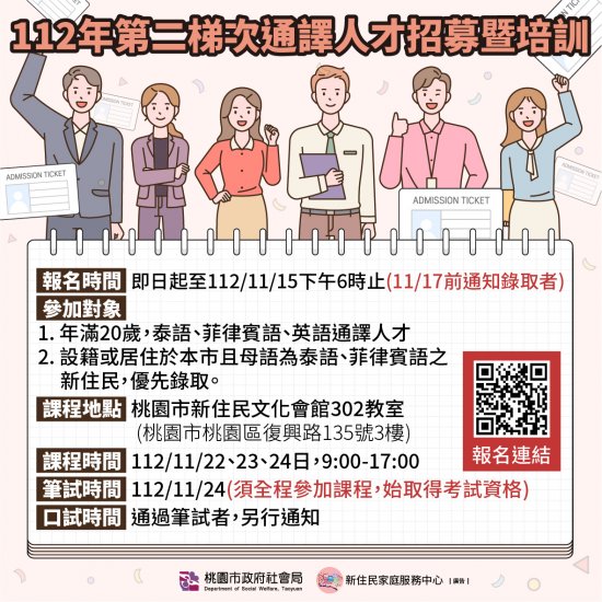 社會局辦理「112年度第二梯次通譯人才招募暨培訓」