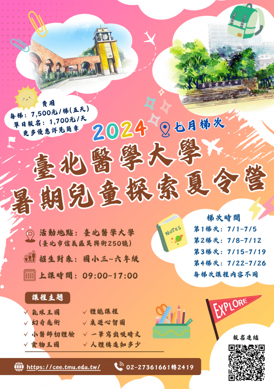臺北醫學大學辦理「2024臺北醫學大學暑期兒童探索夏令營(7~8月)」