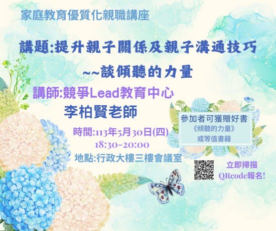 | 1.時間:113年5月30日(四)晚上18:30-20:00。 |