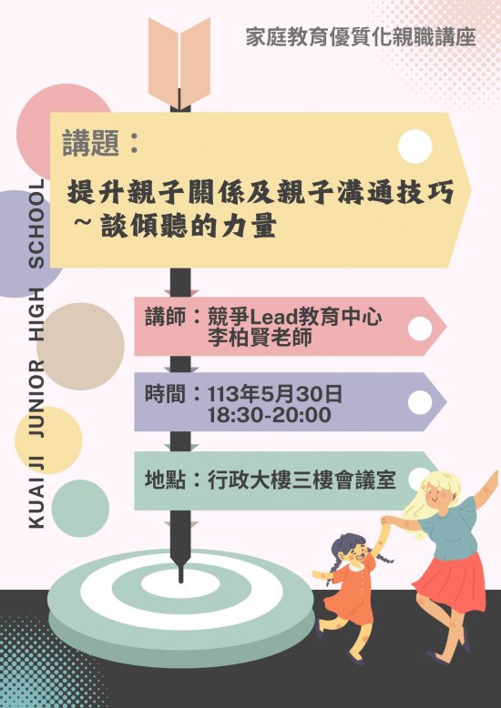 | (二)教師請至「桃園市教育發展資源入口網」報名,活動編號「J00009-240200006」主辦單位:會稽國中,全程參與者核予2小時研習時數。 |