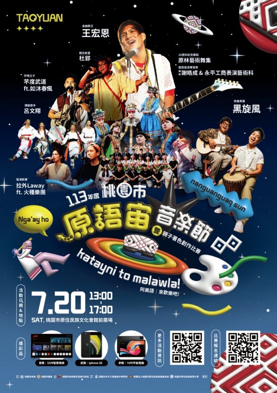 「桃園市113年度原語宙音樂節暨親子著色創作比賽」活動海報