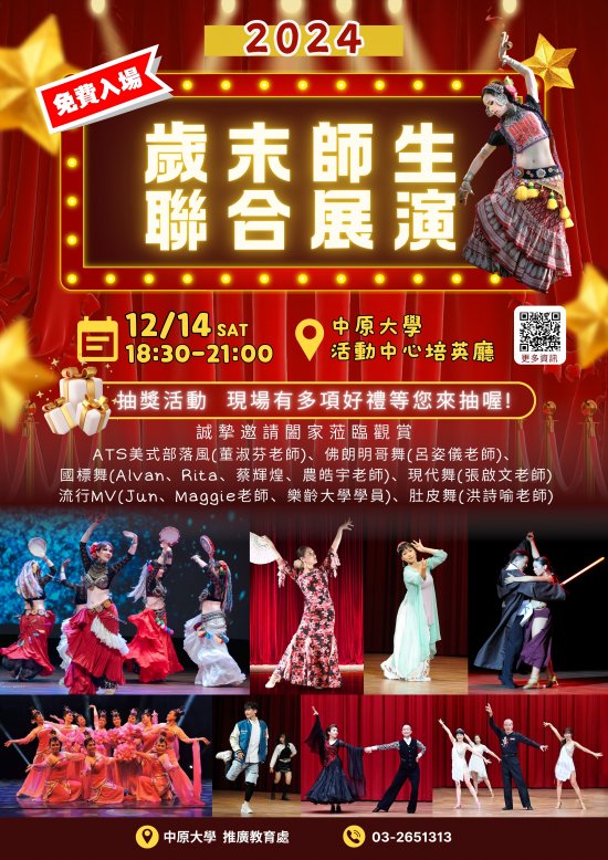 中原大學推廣教育處於113年12月14日(星期六)舉辦「2024歲末師生聯合展演」