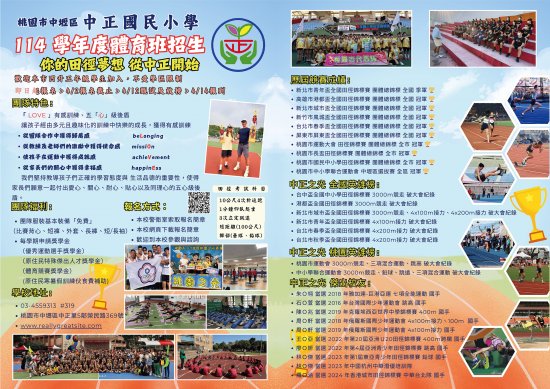 114學年度桃園市立中正國民小學體育班新生入 學甄選簡章