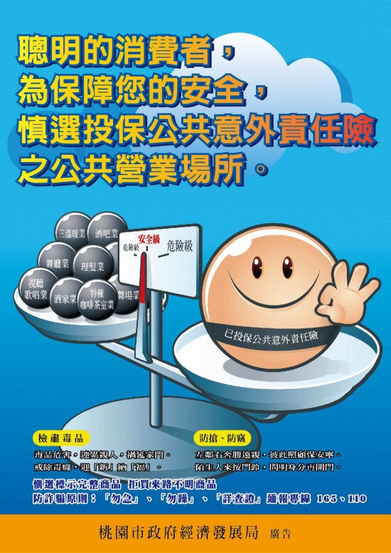 慎選投保公共意外責任險之公共營業場所,以保障生命、身體、財產安全。